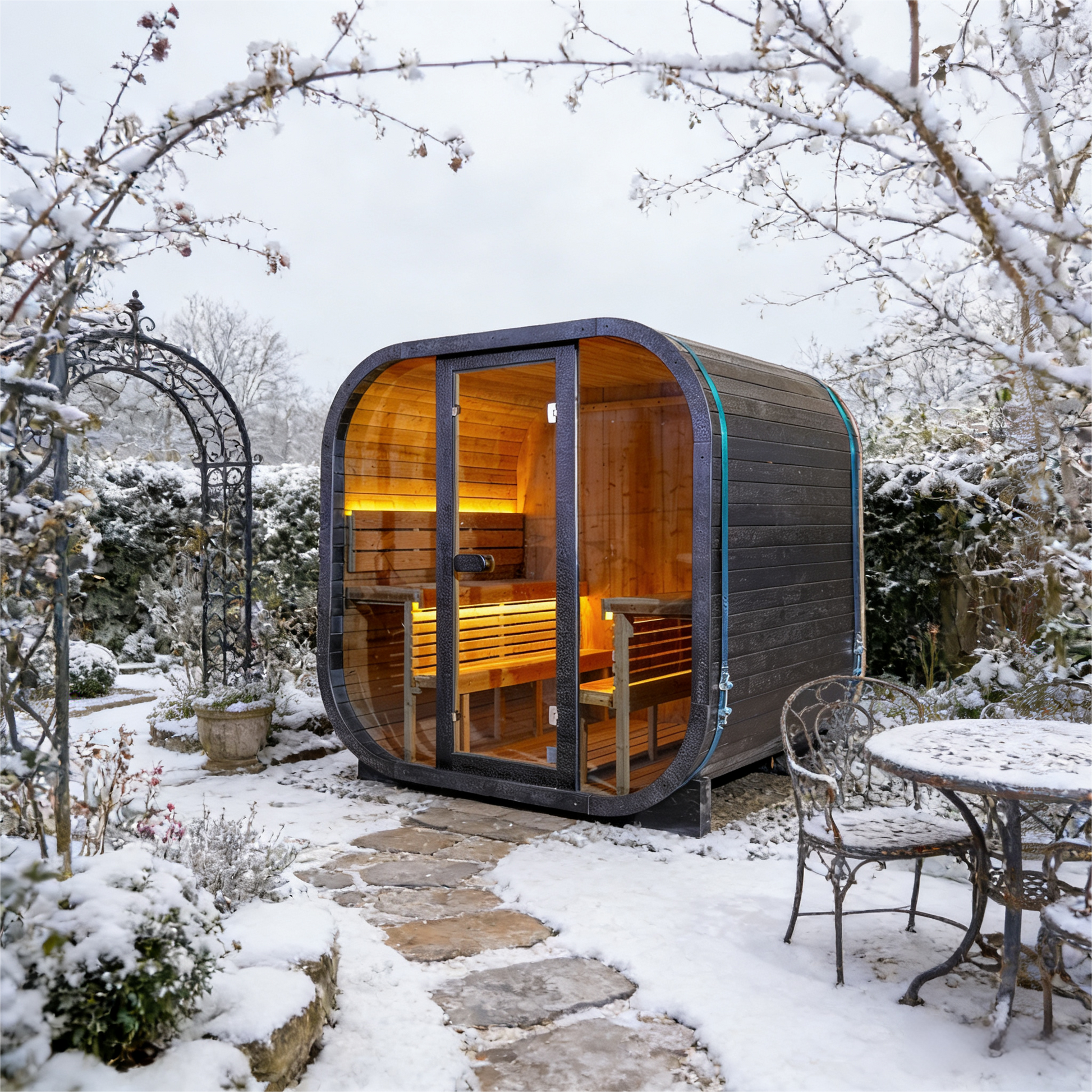 The Helius 4 Person Traditional Outdoor Black Carbonized Spruce Square Steam Sauna